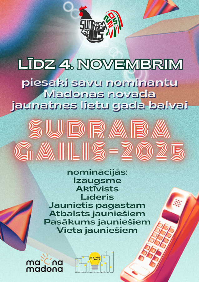 Gads pagājis nemanot un atkal ir laiks godināt aktīvākos Madonas novada jauniešus un darbā ar jaunatni iesaistītos pasniedzot Madonas novada jaunatnes lietu gada balvu "Sudraba gailis - 2025".