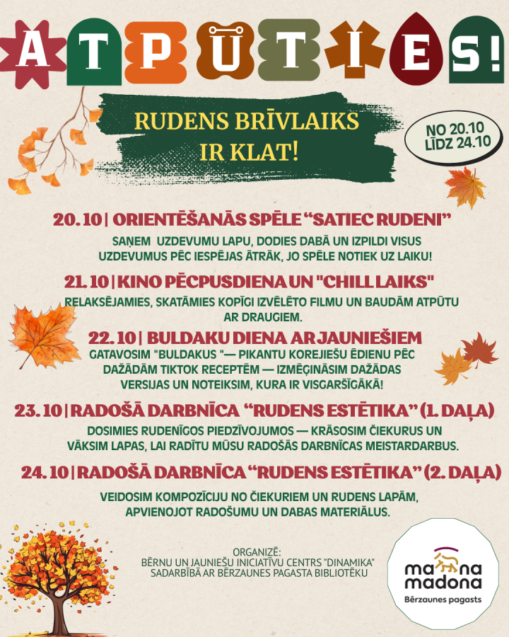 21.10. No plkst. 14:00 – Kino pēcpusdiena un “Chill laiks”