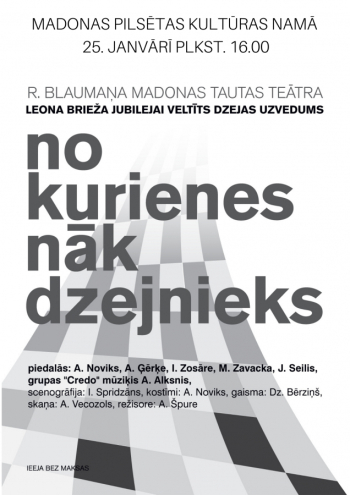 Dzejniekam, mūsu novadniekam (dzimis Madonas novada Mētrienā) Leonam Briedim - 70! R.Blaumaņa Madonas Tautas teātris dzejniekam jubilejā uzdāvināja viņa dzejas uzvedumu “No kurienes nāk dzejnieks”. Uzvedumā piedalās viens no 150 tekstu komponētājiem - grupas “Credo” mūziķis Armands Alksnis, un Tautas teātra aktieri: