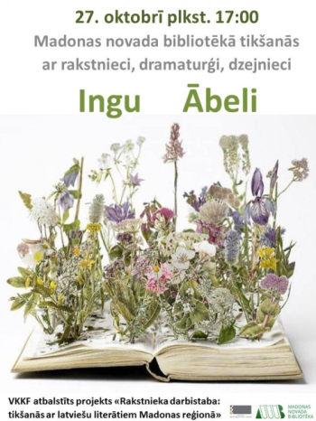 „… apkārt tik stingi ziemīgi lauki, naidīgi visam siltajam, visam dzīvajam”, bet mēs jūs laipni aicinām ceturtdien, 27. oktobrī plkst. 17:00 Madonas novada bibliotēkā uz VKKF atbalstītā projekta „Rakstnieka darbistaba: tikšanās ar latviešu literātiem Madonas reģionā” trešo tikšanos. Šoreiz viesos gaidām rakstnieci, dramaturģi un dzejnieci Ingu Ābeli...
