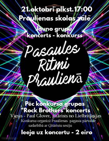 Jau ceturto reizi Praulienā notiks Jauno grupu koncerts-konkurss „Pasaules ritmi Praulienā”. Konkursantus profesionāli vērtēs pieaicinātie mūziķi - Atis Ieviņš un grupa Rock Brothers, kā arī viesis no Lielbritānijas ģitārists - Paul Glover, kuri pēc apbalvošanas ceremonijas sniegs koncertu. Balvu klāsts būs ļoti plašs. Tiks vērtētas gan grupas, gan arī katrs mūziķis individuāli.