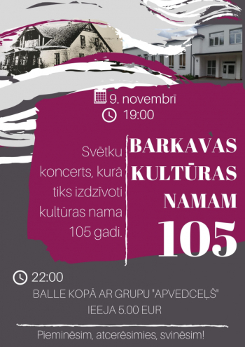 Liela bijusi barkaviešu sajūsma, kad 1914.gada ziemā atklājuši īstu gaismas pili. Biedrības nams bija barkaviešu lepnums un tāds - Barkavas kultūras nams mums ir joprojām! Aicinām kopā svinēt jubileju uz vēl vecā 1965.gadā liktā ozolkoka parketa grīdas, bet kura ir tik sirdij tuva...