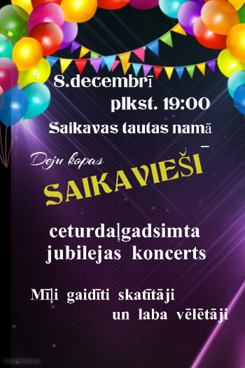 Deju kopa „Saikavieši” mīļi gaidīs visus interesentus, kam ir tuva deja un kuri vēlas būt klāt viņu ceturtdaļgadsimta jubilejas koncertā. Šo koncertu kuplinās Praulienas pagasta pašdarbības kolektīvi, Barkavas deju kolektīvi, kā arī draugi no Igaunijas.