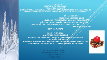 Madonas pilsētas kultūras namā Ziemassvētku eglīte Madonas pilsētā deklarētajiem no 2013. līdz 2019.gadam (ieskaitot) dzimušajiem bērniem, kuri neapmeklē pirmsskolas izglītības iestādi. Tiekamies!