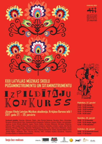 No 2017.gada 27.janvāra līdz 29.janvārim Jāzepa Vītola Latvijas Mūzikas akadēmijā jau divdesmit otro reizi notika Latvijas mūzikas skolu pūšaminstrumentu un sitaminstrumentu izpildītāju konkurss, kurā piedalījās 180 jaunie mūziķi 15 instrumentu grupās, pārstāvot 49 Latvijas mūzikas skolas. Konkursu rīko biedrība “Latvijas Jauniešu pūtēju orķestris”, to atbalsta Valsts Kultūrkapitāla fonds, Rīgas dome, Latvijas Bērnu fonds.