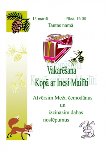 No 2012.gada 12. līdz 18.martam Kultūras ministrija un Britu padome sadarbībā ar Vides aizsardzības un reģionālās attīstības ministriju organizē Radošās darbības nedēļu RADI!. Tās ietvaros Vestienas pagastā notiks radošās izglītības pasākums "Mežs čemodānā", kurā Vestienas pagasta iedzīvotājiem būs iespēja tikties ar SIA LLKC Meža konsultāciju pakalpojumu centra Apmācību centra "Pakalnieši" vadītāju Inesi Mailīti.