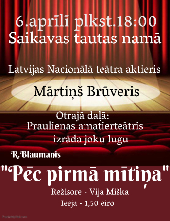 Latvijas Nacionālā teātra daudzpusīgais aktieris Mārtiņš Brūveris. Otrajā daļā - Praulienas amatierteātra izrāde – R.Blaumaņa joku luga „Pēc pirmā mītiņa”.