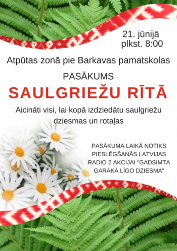 Saulgriežu noskaņās 22.jūnija vakarā aicina iejusties Tautas deju ansamblis "Vidzeme". Gaidāmas dažādas lustes visa vakara garumā ar pušķošanu, dančiem un ielīgošanu.