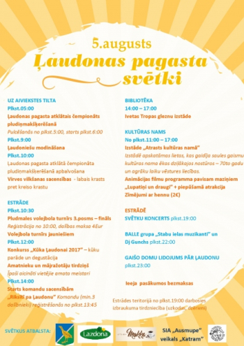 Jau tradicionāli augusta pirmajā sestdienā norisināsies Ļaudonas pagasta svētki - ar programmu visas dienas garumā. Ļaudonas pagasta svētki - svētki Ļaudonai, ļaudoniešiem un pagasta viesiem!