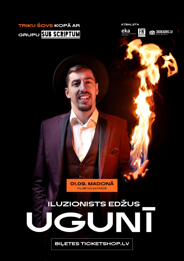 Iluzionists Edžus dodas tūrē pa Latviju ar jaunu triku šovu "Iluzionists Edžus UGUNĪ"! Madonas estrādē tas būs skatāms 1. septembrī plkst. 19.00.
