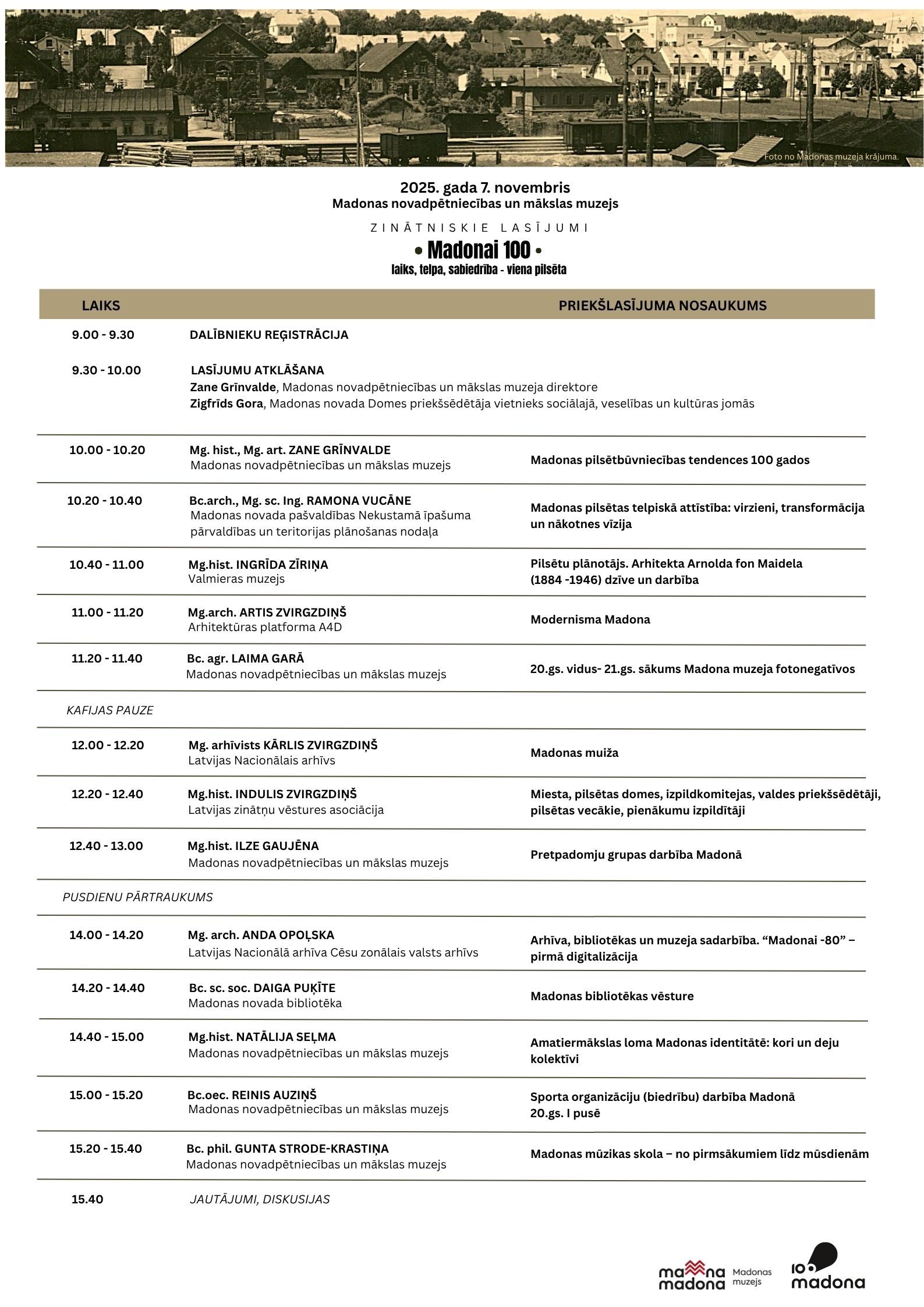 Ar zinātnisko lasījumu programmu var iepazīties Madonas muzeja mājaslapā www.madonasmuzejs.lv.
