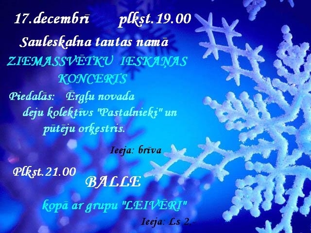 Sauleskalna tautas namā Ziemassvētku ieskaņas koncerts un balle