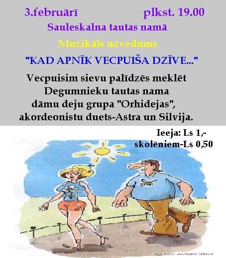 3.februārī plkst. 19.00 Sauleskalna tautas namā