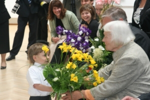 neslēpa saviļņojumu sveikt nopelniem bagāto rakstnieci klātienē