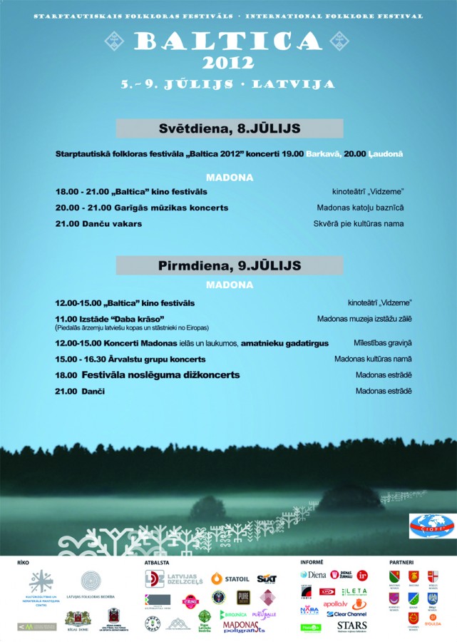 Baltijas lielākos folkloras svētkus – festivālu BALTICA 2012 – svinēs gan 173 Latvijas etnogrāfiskie ansambļi un folkloras kopas, gan tautas muzikanti, lietišķās mākslas meistari, amatnieki, gan arī ārvalstu grupas un stāstnieki no ASV, Itālijas, Ukrainas, Bulgārijas, Francijas, Izraēlas, Lietuvas, Zviedrijas, Igaunijas un Lielbritānijas. Tradicionāli festivālā piedalās arī ārvalstu latviešu grupas un Latvijas mazākumtautību kolektīvi.