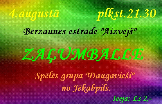 4.augustā plkst.19.00 Bērzaunes estrādē „Aizvējš”
