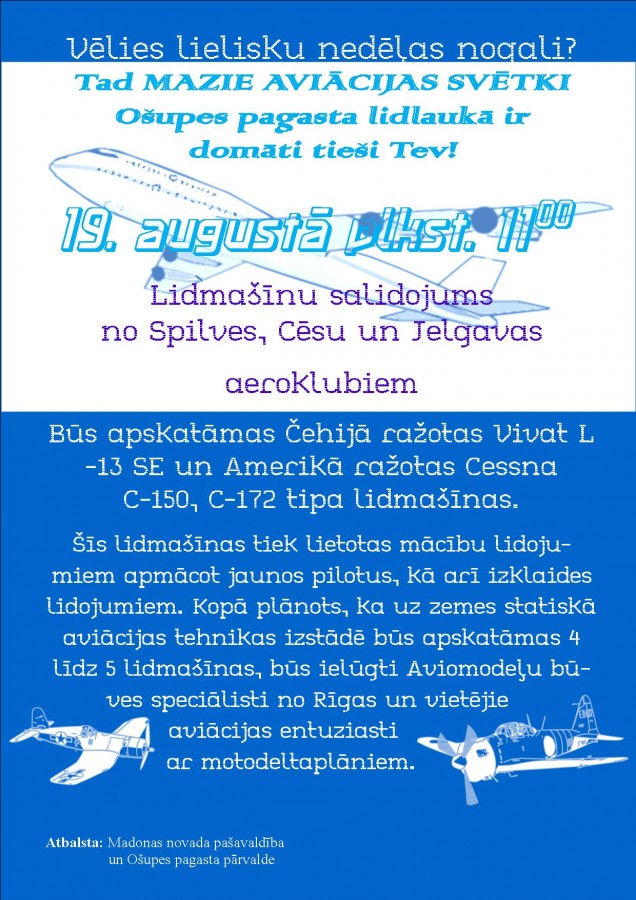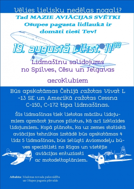 19.augustā plkst.11:00 Ošupes pagasta lidlaukā