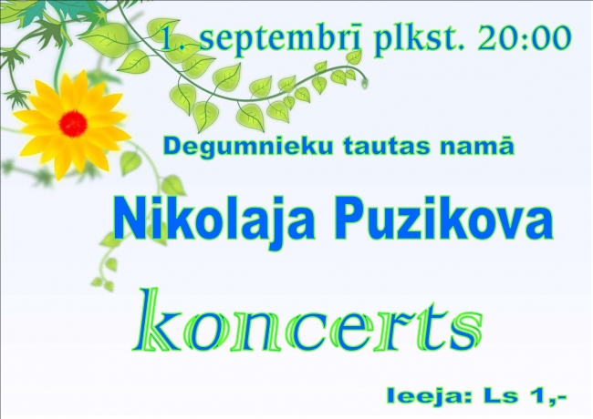 1. septembrī Degumnieku tautas namā paredzētais Nikolaja Puzikova koncerts mākslinieka slimības dēļ ATCELTS!!