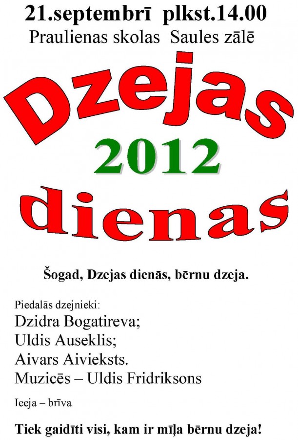 21.septembrī plkst.14.00 Praulienas skolas Saules zālē