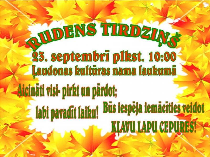 23. septembrī visi pirkt un pārdot gribētāji laipni aicināti uz Rudens tirdziņu - plkst. 10:00 Ļaudonas kultūras nama laukumā.