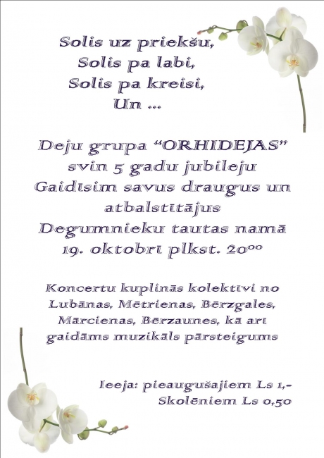 Deju grupa " Orhidejas " aicina uz 5 gadu jubilejas koncertu