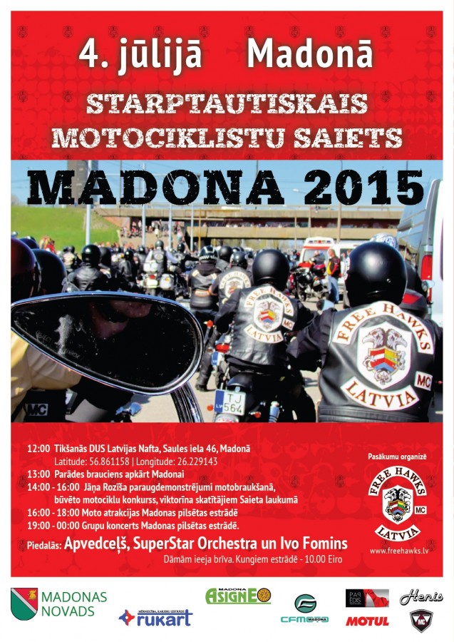 4.jūlijā Madonā Starptautiskais motociklistu saiets