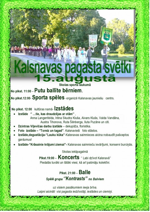 19:00 - 21:00 koncerts "Labi dzīvot Kalsnavā’" skolas iekšpagalmā.