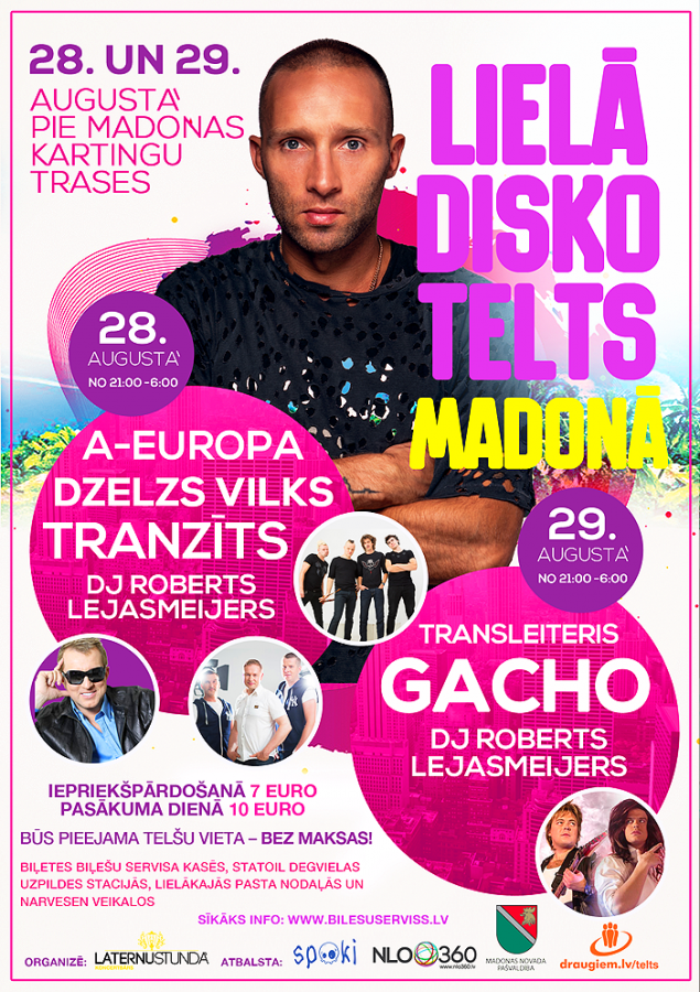 Ieeja disko teltī no pulksten 21:00 līdz 06:00.