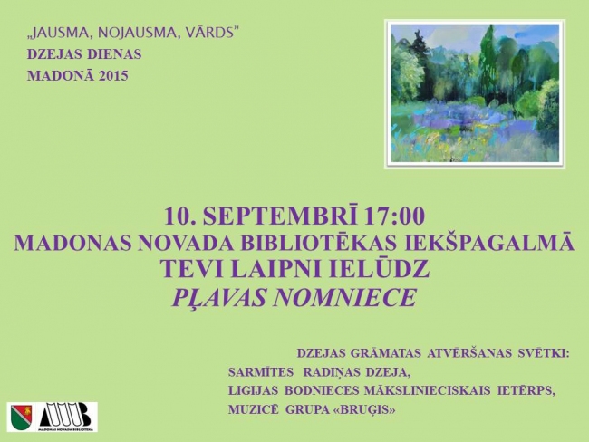 Madonas novada bibliotēkā 10. septembrī pulksten 17:00