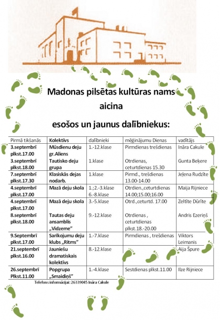 Jaunai sezonai sākoties, Madonas pilsētas kultūras nams aicina bijušos un jaunus dalībniekus piedalīties dažādos kolektīvos. Pieteikšanās līdz 26.septembrim...