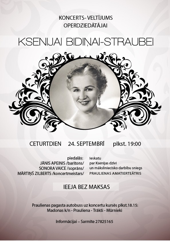 Praulienas pagasta Saikavas tautas namā 24.septembrī pulksten 19.Ieeja bez maksas.