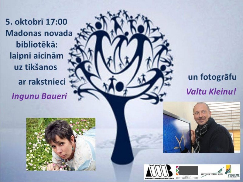 Rakstniece Inguna Bauere būs iepriecināta satikt savu grāmatu lasītājus. Lai gan viņa ir dzimusi Cēsīs, mēs arī  Ingunu saucam par novadnieci, jo vairāk nekā desmit gadi nostrādāti Ērgļu profesionālajā vidusskolā. Viņas pacietību - meklēt rakstos - var tikai apbrīnot, jo nu jau daudzie kultūrvēsturiskie romāni („Lizete, dzejniekam lemtā”, „Ede, Pumpura sieva”, „Skolas Līze” u.c.) par to liecina. Varbūt tāpēc I.Baueres grāmatas tiek tik ļoti lasītas, lai rastu kopīgo redzējumu par kultūras norisēm vienā laikā un kultūrtelpā. Mūsu paaudzes literatūras stundās tika runāts, mācīts par katru personību individuāli, pietrūka vēstījums par personībām, kas dzīvoja, radoši strādāja, satikās, priecājās un izsāpēja dzīvi kopīgās Laika pieturās.