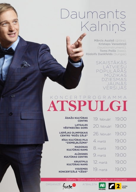 Jaunais un talantīgais dziedātājs Daumants Kalniņš, kuru daudzi pazīst gan kā Kvazimodo atveidotāju no Zigmara Liepiņa operas „Parīzes Dievmātes katedrāle” iestudējuma Latvijas Nacionālajā teātrī, gan kā solistu daudzos lielos koncertprojektos, jau 19.februārī uzsāks savu Latvijas koncerttūri, klausītājiem piedāvājot jaunāko soloprogrammu „Atspulgi”.