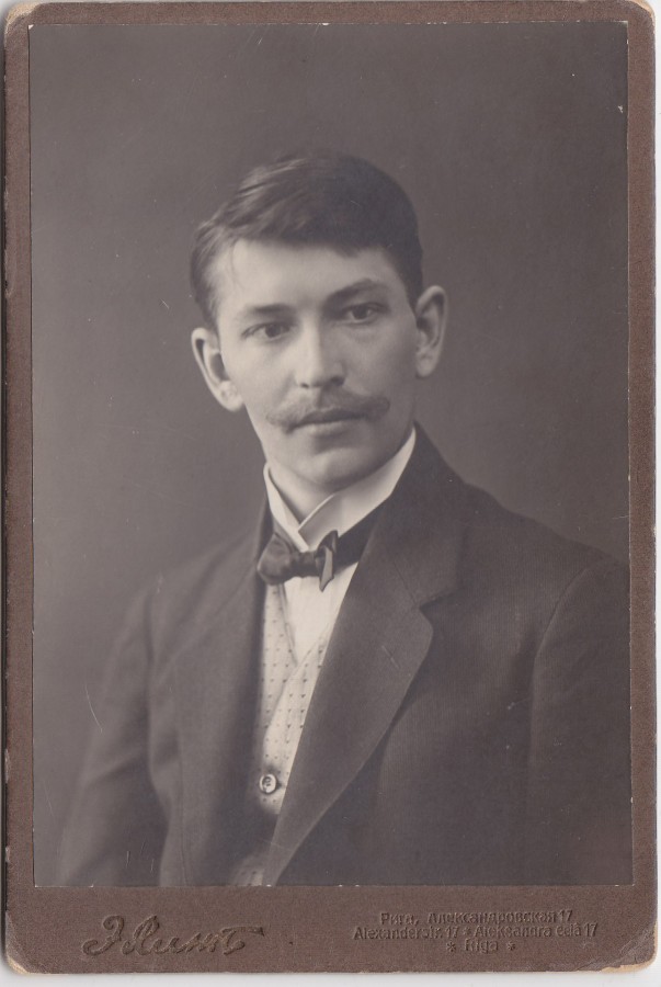 Foto: J.Ezeriņš - Lazdonas luterāņu draudzes skolas palīgskolotājs 1913.g.. J.Rieksta foto.