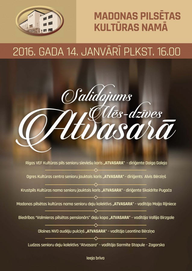 Madonas pilsētas kultūras namā 14.janvārī pulksten 16:00.Ieeja bez maksas.