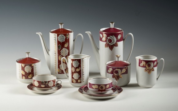 2. Kafijas servīze “Saulīte”. Formas un dekora autore Zina Ulste. 20.gs. 70.gadi.