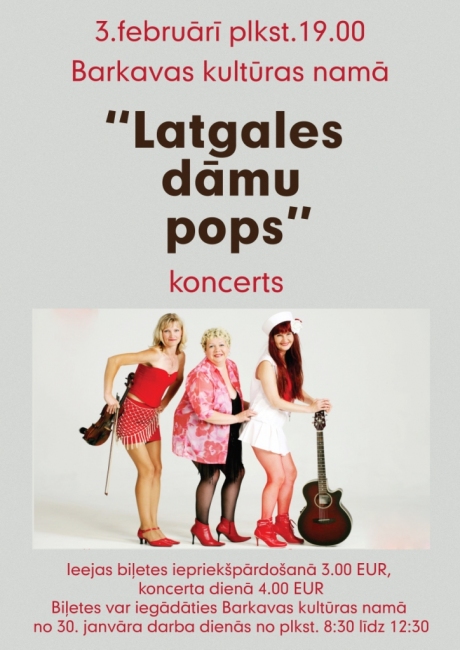 Biļetes var iegādāties Barkavas kultūras namā no 30.janvāra darba dienās no plkst. 8:30 līdz 12:30.