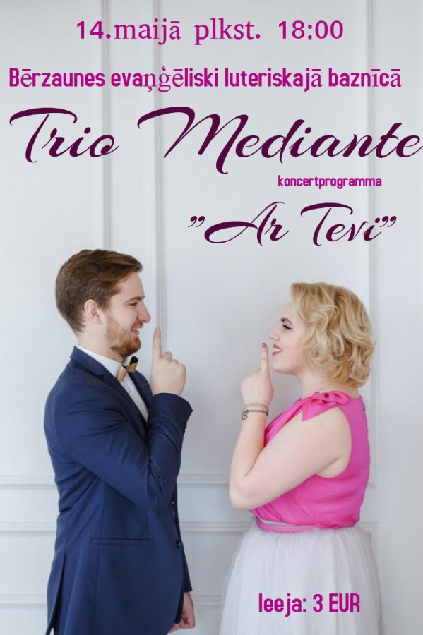 Bērzaunes evaņģēliski luteriskajā baznīcā 14.maijā pulksten 18:00.Biļetes cena: 3.00 EUR.