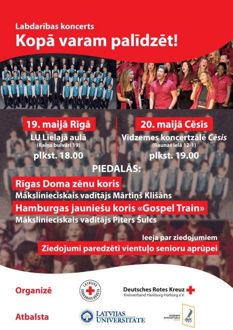 Latvijas un Hamburgas Sarkanā Krusta biedrību daudzgadīgās sadarbības laikā realizēti neskaitāmi kopēji projekti ar mērķi palīdzēt cilvēkiem Latvijā. Iniciatīva par kopēju koru koncertu nāk no Hamburgas kolēģiem. Ziedojumos savāktie līdzekļi, lai cik tie būtu lieli vai mazi, tiks tērēti Latvijas vientuļo senioru aprūpei visā Latvijas teritorijā, proporcionāli ienākošo ziedojumu reģionālajam sadalījumam.