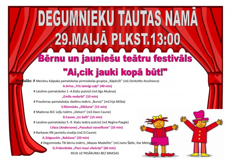 Degumnieku tautas namā 29.maijā pulksten 13:00.Ieeja bez maksas.