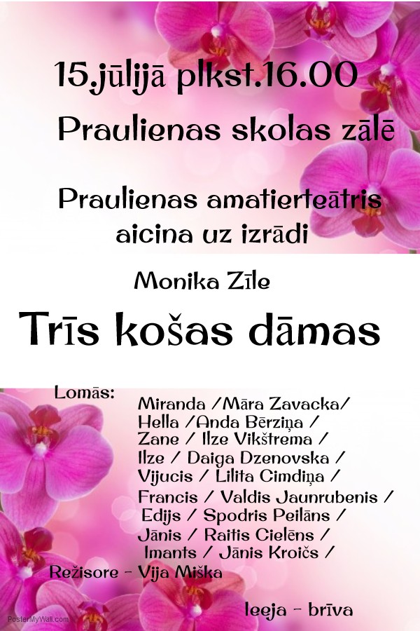 Praulienas pamatskolas zālē 15.jūlijā pulksten 16:00.