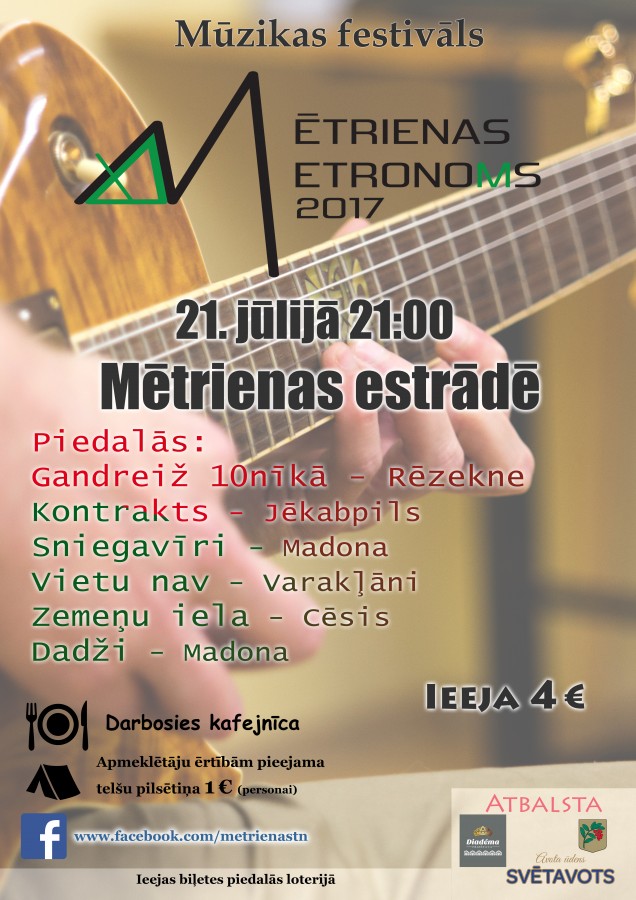 Mētrienas estrādē 21.jūlijā pulksten 21:00.Biļetes cena: 4.00 EUR.