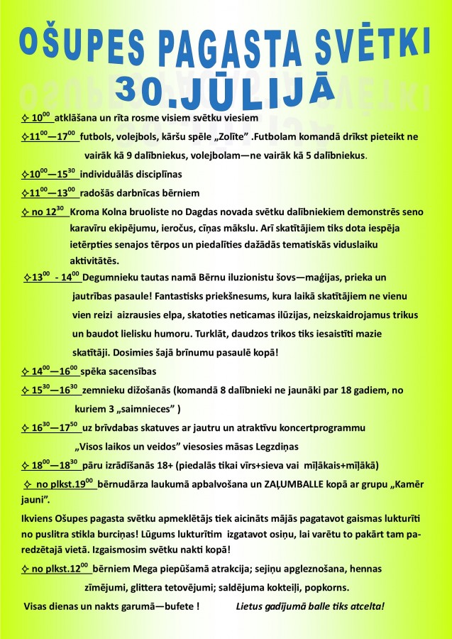 Ošupes pagasta Degumniekos 30.jūlijā no pulksten 10:00.Ieeja pasākumā bez maksas.
