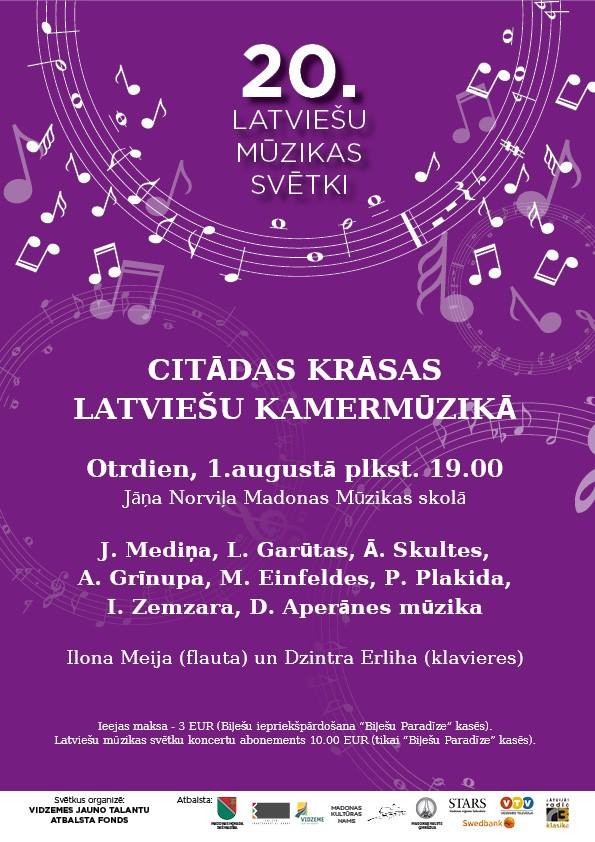 Jāņa Norviļa Madonas mūzikas skolā, Blaumaņa ielā 16, 1.augustā pulksten 19:00.