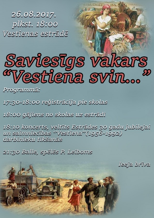 pulksten 18:10 Koncerts par godu "Estrādei -30" un saimniecības "Vestiena" (1956 – 1992) darbinieku tikšanās reizei.