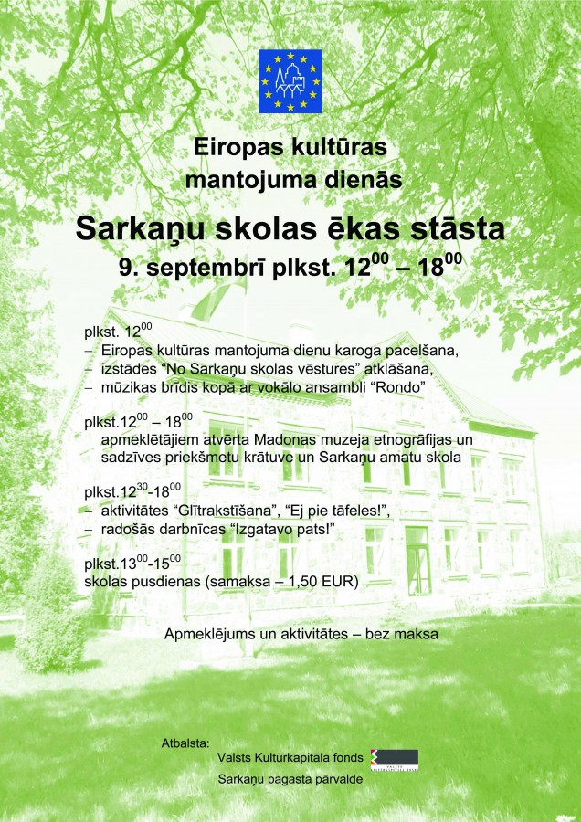 Sarkaņu skolas ēkās 9.septembrī no pulksten 12:00 līdz 18:00.