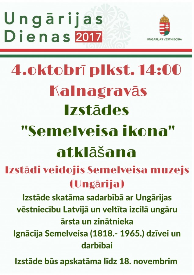 Izstādes atklāšana Tautas namā “Kalnagravas” 4.oktobrī pulksten 14:00.Izstāde apskatāma līdz 18.novembrim.