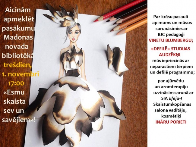 Madonas novada bibliotēkā 1.novembrī pulksten 17:00.Ieeja bez maksas.