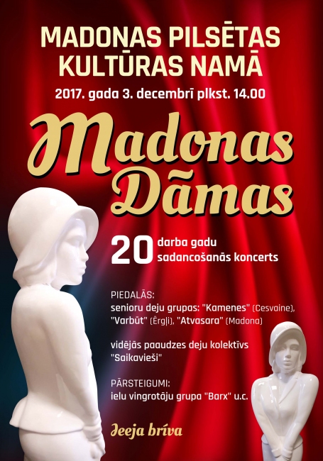Madonas pilsētas kultūras namā 3.decembrī pulksten 14:00.