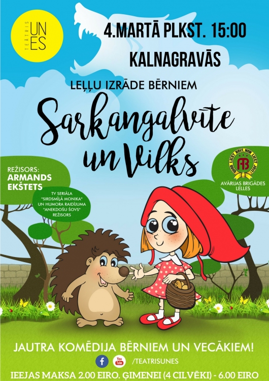 Žanrs: muzikāla komēdija bērniem un vecākiem. Par ko ir izrāde: Sarkangalvīte nav parasta meitene. Viņa prot karatē, dzied un mācās svešvalodas. Mežā Sarkangalvītei ir daudz draugu, par kuriem viņa rūpējas un kurus aizstāv. Bet kāpēc ceļš pie vecmāmiņas izrādās tik noslēpumu pilns? Un no kā tad mežā visi īsti baidās? To jūs uzzināsiet jaunajā leļļu izrādē bērniem un vecākiem “Sarkangalvīte un Vilks”. Režisors Armands Ekštets - TV seriāla "Sirdsmīļā Monika" un humora raidījuma "Anekdošu šovs" režisors.